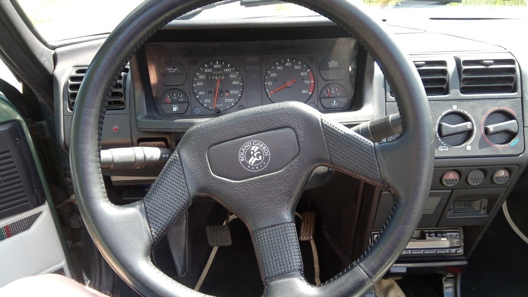 Plus de trente ans après, le tableau de bord conserve une certaine modernité. Les plastiques sont durs mais rien ne semblent pas avoir véritablement bougé avec le temps, et le soleil. Seuls quelques grincements peuvent rappeler l’origine grand public de l’auto, mais tout est à sa place, et fonctionnel.