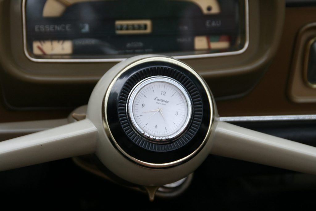 Si cette couleur est aujourd’hui, sur la production automobile moderne, d’une banalité affligeante, il faut bien avouer que cette robe sied à merveille à la Renault Floride, d’autant plus lorsqu’elle est associé à la sellerie en simili couleur cognac, comme c’est le cas ici. Son aspect métallisé lui donne même une touche de modernité, comme si la voiture avait 10 ans de moins.