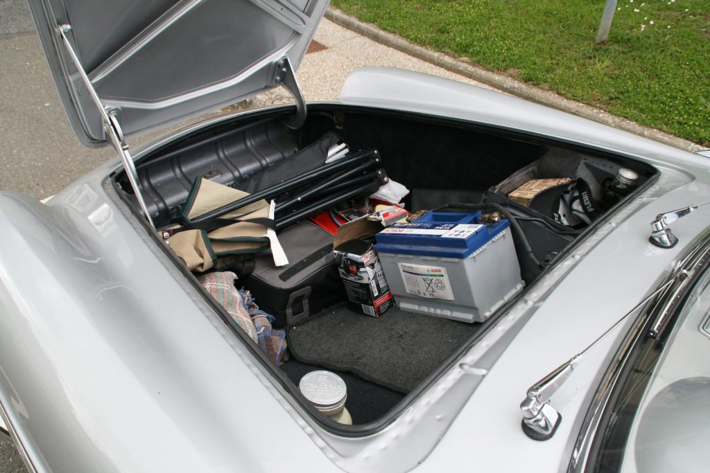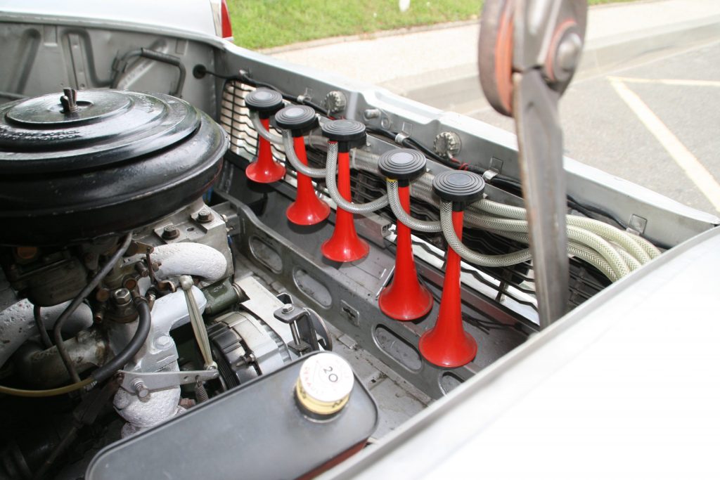 Si le rouge et le blanc comptent parmi les coloris les plus emblématiques du modèle, les catalogues de l’époque pouvaient aussi orienter les clients vers des couleurs métallisées, beaucoup plus rares dans les années 1960. Une option cochée par le tout premier acquéreur de notre modèle du jour, nichée au cœur des Yvelines, et toute de gris vêtue.